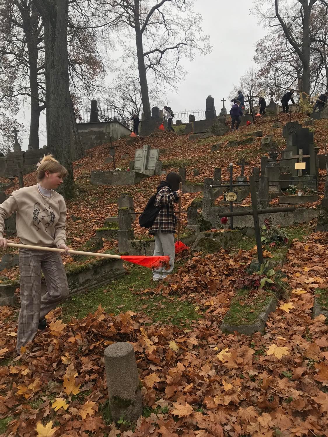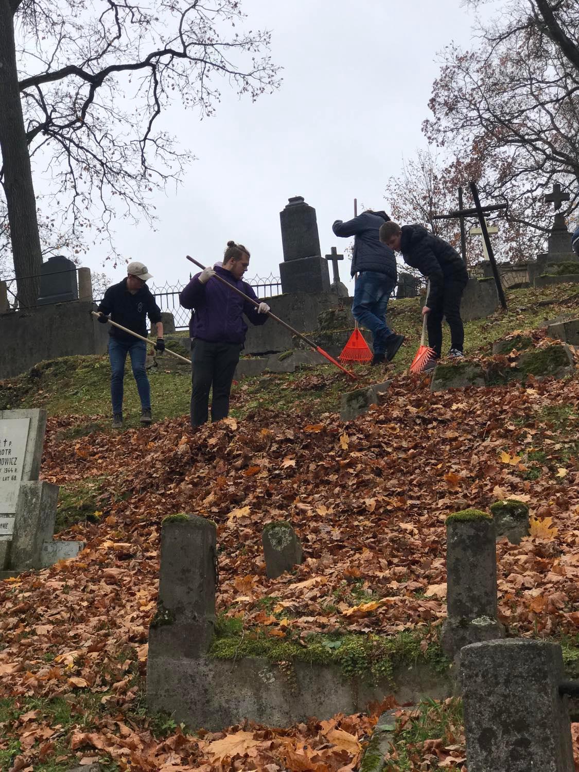 Spalio 24 d. po pamokų gimnazistai skubėjo į istorines Rasų kapines, jau trečią kartą dalyvavo kapų tvarkymo darbuose.
