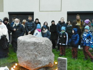 Lapkričio 23 dieną tradicinio lietuvių kalbos projekto PRAKALBINKIME TAUTOSAKĄ šventės dalyviai susibūrė gimnazijos kieme, kur vyko Akmens iš senovės lietuvių šventovės atidengimo ir pagerbimo apeiga. Ją vedė etnologė Eglė Valentė, apeigas atliko Lietuvos Romuvos Krivė Inija Trinkūnienė, padedama apeiginio folkloro grupės KŪLGRINDA. Apie akmens istoriją kalbėjo archeologas, Jono Basanavičiaus premijos laureatas Vykintas Vaitkevičius, taip pat Česlavas Kovaliūnas, Dailininkų sąjungos skulptūros ir vitražo centro direktorius. Šventėje svečiavosi ir Vilkpėdės seniūnijos seniūnas Mindaugas Kuncaitis. Po akmens atidengimo ceremonijos svečiai aplankė gimnazijos muziejų.